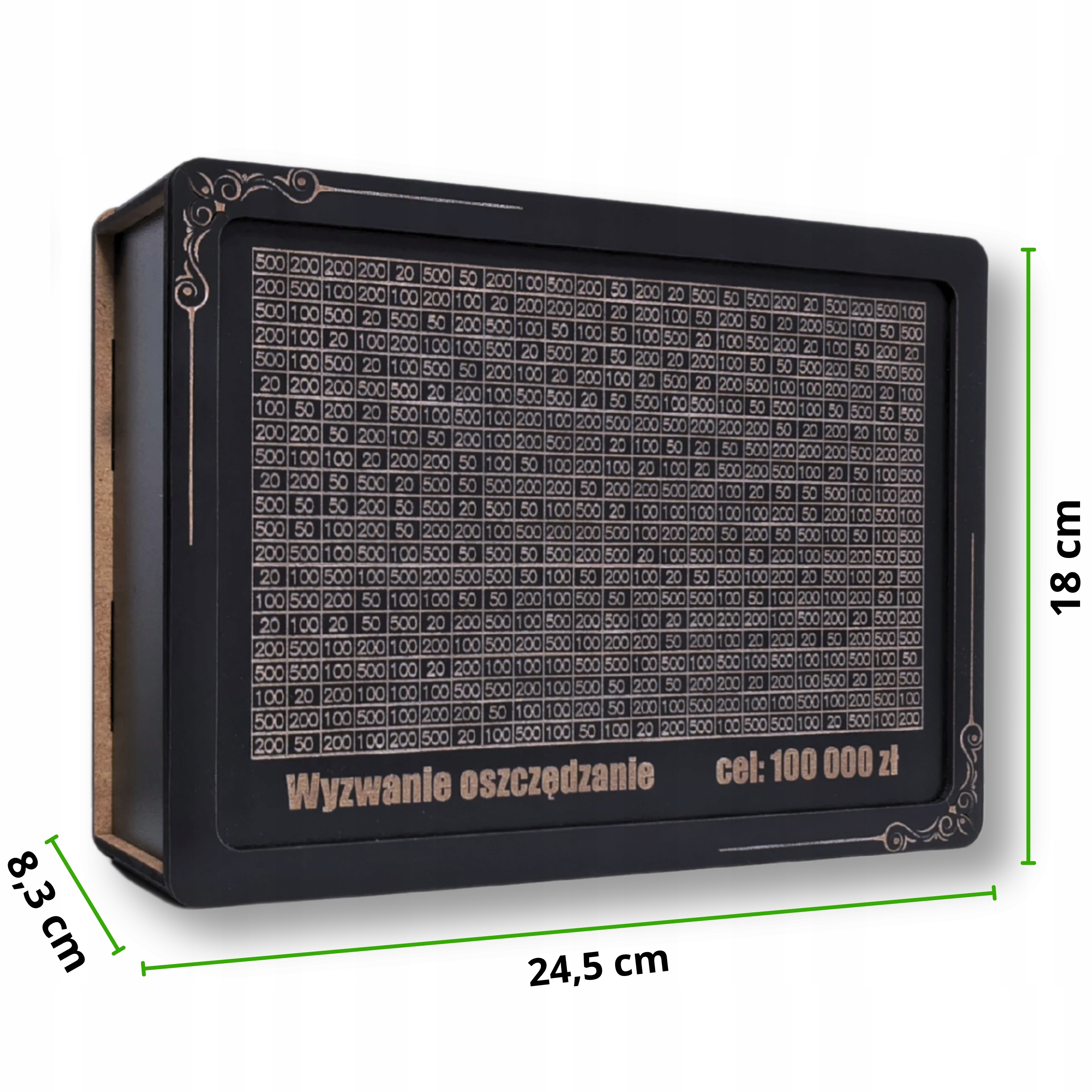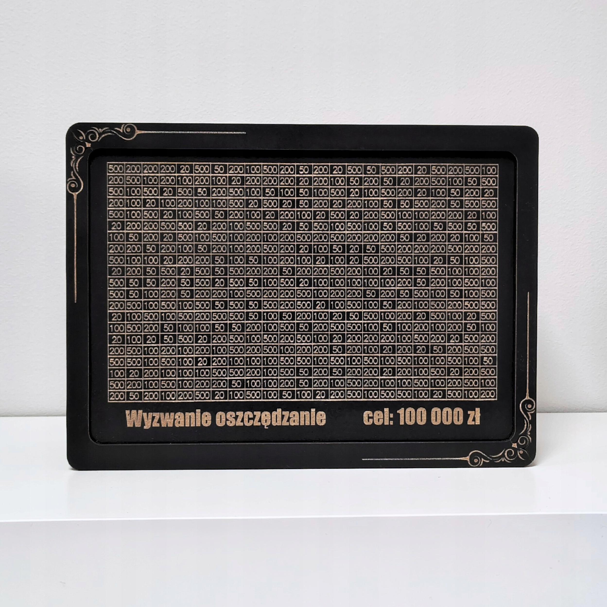 Skarbonka Wykreślana Wyzwanie Personalizowana Grawer Zmienna Kwota Czarna