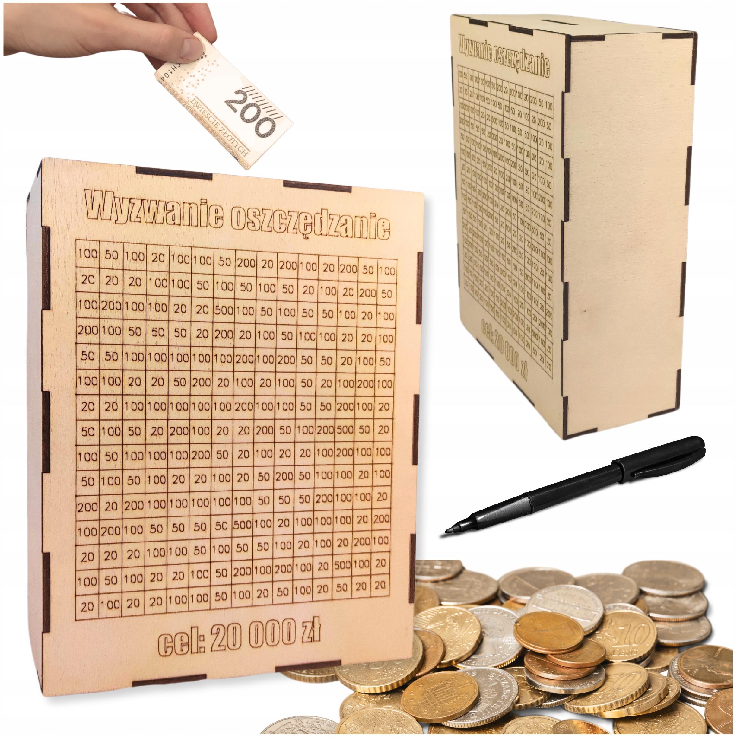 Skarbonka Wykreślana Wyzwanie Prezent Upominek Grawer Zmienna Kwota Wyzwania
