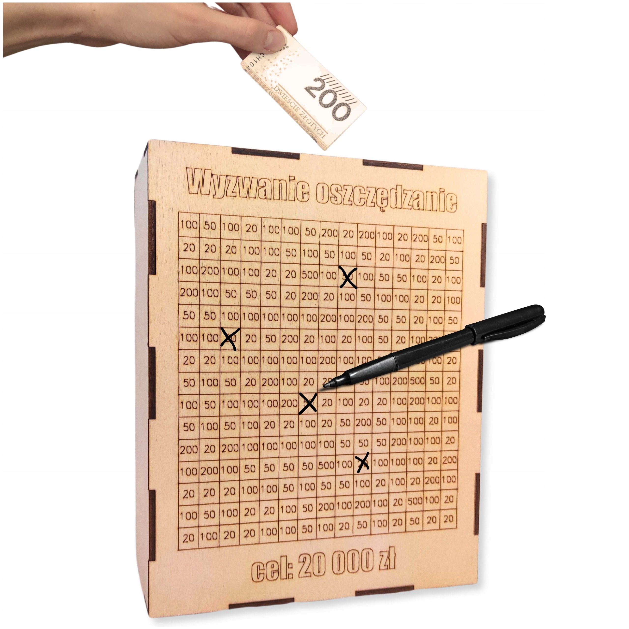 • W zestawie: skarbonka z wygrawerowanym trackerem do wykreślania + marker GRATIS!